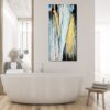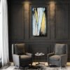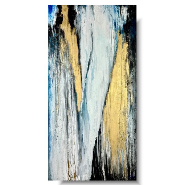 Abstrakcja do salonu „Podzieleni” obraz pionowy 2188A to delikatny granatowy obraz z muśnięciami złota. To piękny ręcznie malowany obraz w eleganckiej ponadczasowej kolorystyce i dużym formacie.