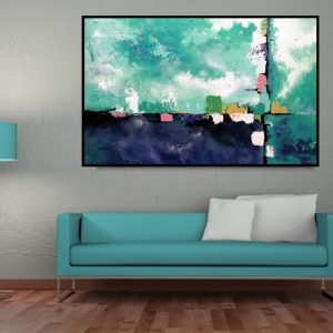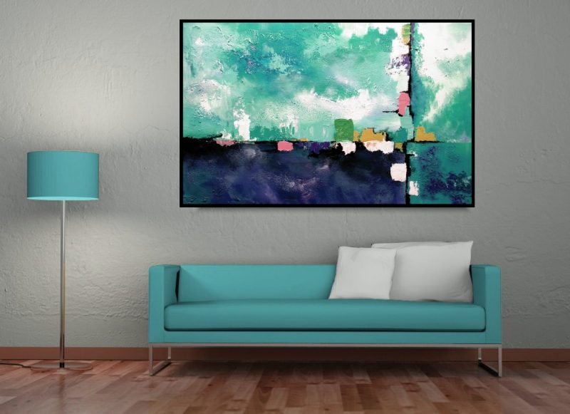 Abstrakcja duży turkusowy obraz w kontrastowej kolorystyce. Idealnie pasuje do modnego wnętrza – salonu, sypialni, przedpokoju czy biura. Oprócz standardowych farb używamy często zaskakujących technik oraz tworzyw malarskich. Posiadamy wiele modnych wzorów oraz klasycznych motywów. Gdyby jednak zamarzyło się Państwu coś zupełnie odmiennego – malujemy obrazy na zamówienie, portret na zamówienie, obrazy kwiaty, obrazy abstrakcje obrazy postacie.