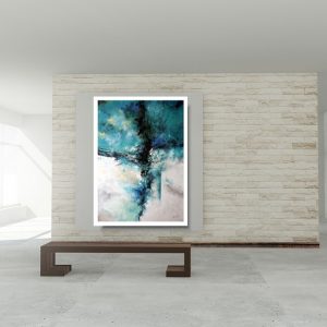 Abstrakcja duży turkusowy obraz składa się z 1 części + białe passe partout.