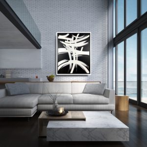 Czarno biała abstrakcja “Znak” duży obraz w ramie 2159A