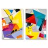 Dwie kolorowe abstrakcje „Kolorowa geometria” – komplet obrazów 2305A w mocnej kolorystyce i z geometrycznymi wzorami obramowany białym passe partout. Doskonała dekoracja pokoju młodzieżowego czy gabinetu. Obrazy można powiesić razem jako jedną kompozycję lub podzielić i powiesić osobno.