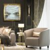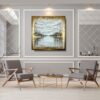 Elegancki obraz w ramie tajemnicze nabrzeże, to dzieło które w abstrakcyjny sposób przedstawia nabrzeże portowe widziane z pokładu statku. Delikatne złote muśnięcia jak przez rozproszoną mgłę ukazują daleki wyczekany ląd. Całość artystycznego zamysłu zamknięta została w piękną złotą ramę, indywidualnie wykonaną specjalnie do tej wizji obrazu. Elegancki marynistyczny złoty obraz ręcznie malowany jest niekonwencjonalny dlatego jest idealny do Twojego wnętrza. Do namalowania tego obrazu użyto ciepłej palety barw z odrobiną chłodu. Piękne złote refleksu obrazu cieszą oczy i ocieplają koncepcję obrazu. Abstrakcja to nasza specjalność dlatego inne klasyczne formy malarstwa staramy się przestawić w abstrakcyjny sposób. Obraz w dużym formacie, nowoczesne obrazy do salonu, modne obrazy do biura, eleganckie obrazy do mieszkania mogą ożywić każde wnętrze – dom, firmę, mieszkanie.