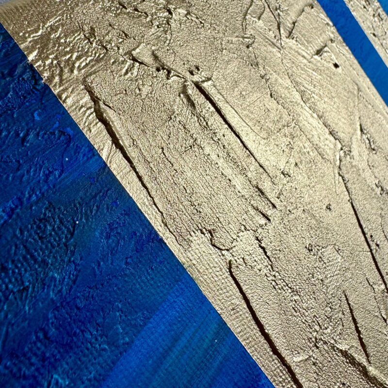 Obraz do salonu “Elegancki granat” abstrakcja 2189A to piękna granatowa abstrakcja przepasana złotymi pasami. Abstrakcja ręcznie malowana w minimalistycznej, ale eleganckiej formie. Abstrakcja to nasza specjalność.