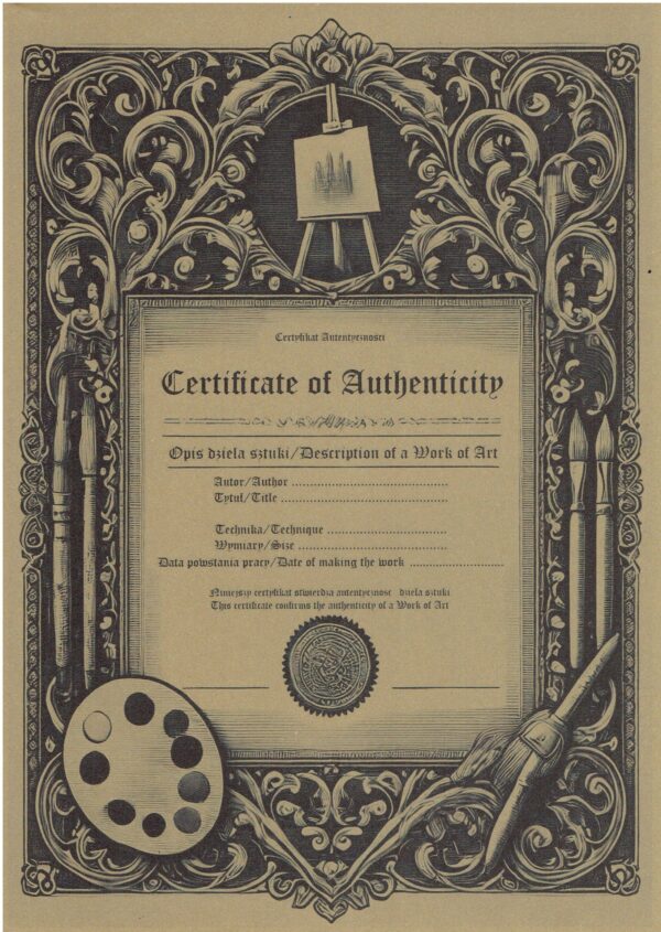 Wysyłka certyfikatu do wcześniej kupionego obrazu – koszt 30zł – proszę o wcześniejszy kontakt.