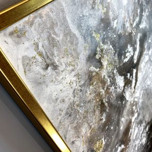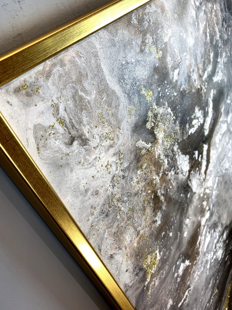 Kolekcja autorska abstrakcja złoty pył naszego autorstwa w eleganckiej, ponadczasowej kolorystyce i złotej rzeźbionej lub cienkiej nowoczesnej ramie. Kolory użytej farby akrylowej przenikają się, dodają tajemniczości i splendoru dlatego nikt nie przejdzie obok niego obojętnie. Niepowtarzalny obraz tworzony metodą pouringu z dodatkiem brokatu. Nowoczesne abstrakcje to nasza specjalność dlatego poświęcamy się im bez reszty. Wykonujemy także obrazy marynistyczne, obrazy kwiaty, obrazy aniołów, obrazy dzielone – dyptyk, tryptyk, fortyk, obrazy jednoczęściowe w dużym formacie. Możemy namalować każdy obraz z naszej oferty w zmienionych wymiarach lub kolorystyce, możemy namalować obraz dzielony na jednej części lub obraz jednoczęściowy podzielić na kilka części.