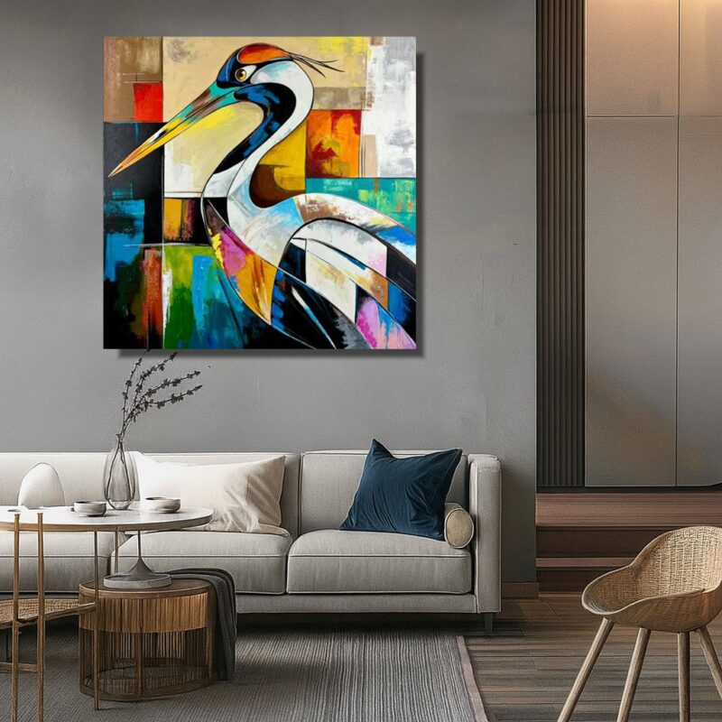 Nowoczesny kolorowy obraz abstrakcyjny “Dostojna czapla” 2361A składa się z 1 części