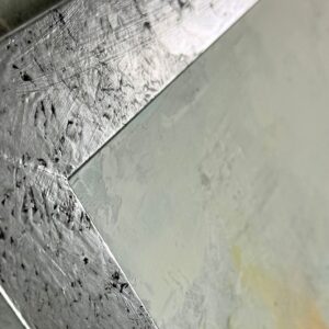 Nowoczesny obraz abstrakcyjny inspirowany naturą „Mglista cisza” 2359A Subtelny, nastrojowy obraz abstrakcyjny inspirowany pejzażem natury. Kompozycja przywodzi na myśl zamglony las odbijający się w spokojnej tafli wody. Delikatne przejścia pastelowych barw tworzą harmonijną, kojącą całość. Dynamiczna faktura i warstwowe nałożenie farby nadają dziełu głębi oraz nowoczesnego charakteru.