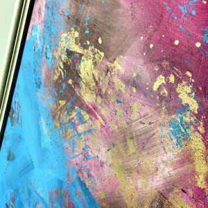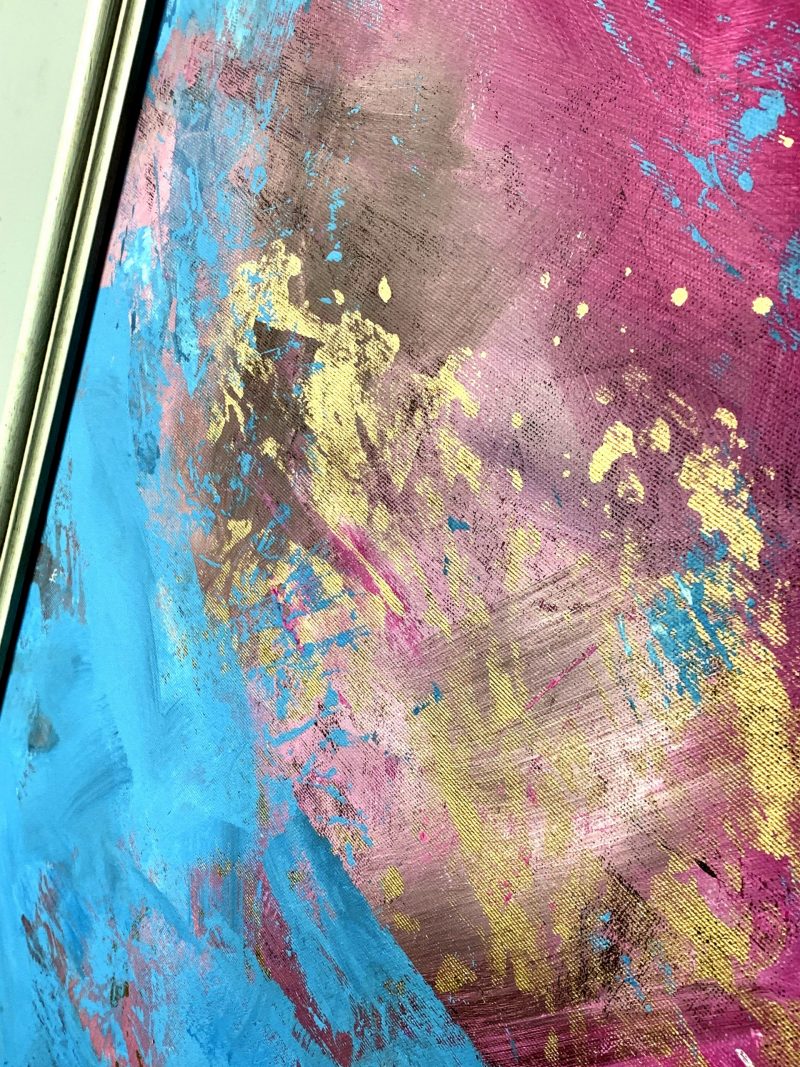 Kolorystyka przewodnia obrazu: różowy, błękitny, złoty + rama