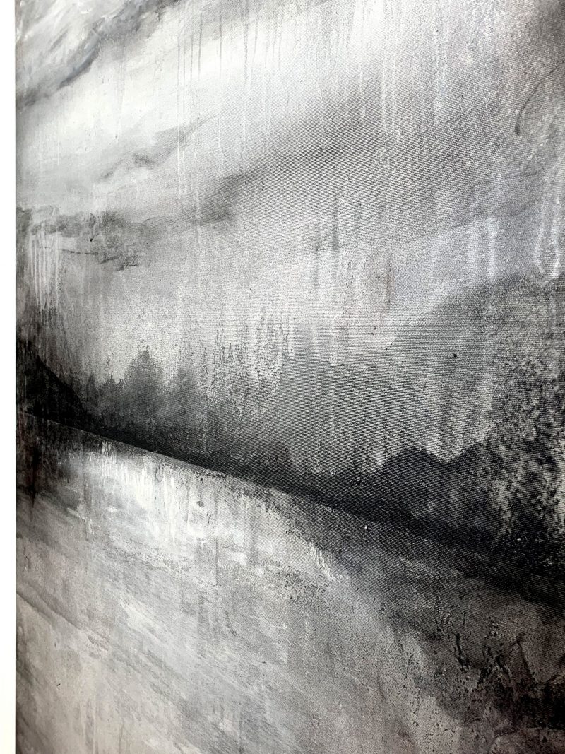 Obraz ręcznie malowany na płótnie “Mglisty krajobraz” 2114A to cykl prac inspirowanych naturą. Delikatny w swej monochromatycznej kolorystyce posiada lekką kompozycję zamkniętą w białe passe partout. To oryginalny obraz w delikatny sposób prezentujący naturę. Delikatne rozmyte kolory oddają piękno górskiego jeziora w mglisty deszczowy dzień. Czarna rama z białym passe partout pięknie wszystko scala. Idealnie ozdobi duży nowoczesny salon czy modne biuro. Wykonujemy obrazy marynistyczne, obrazy kwiaty, obrazy aniołów, obrazy dzielone – dyptyk, tryptyk, fortyk, obrazy jednoczęściowe w dużym formacie. Możemy namalować każdy obraz z naszej oferty w zmienionych wymiarach lub kolorystyce, możemy namalować obraz dzielony na jednej części lub obraz jednoczęściowy podzielić na kilka części. Możemy także dostosować kolorystykę do wnętrza – zmiany prezentujemy na wizualizacji. Jesteśmy kreatywni i elastyczni dlatego zapraszamy do kontaktu mailowego sklep@nowa.dobrasztuka.pl