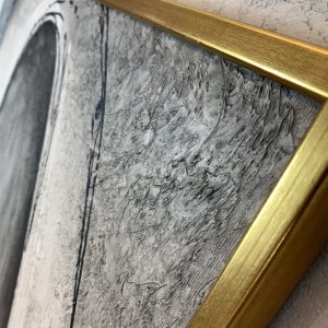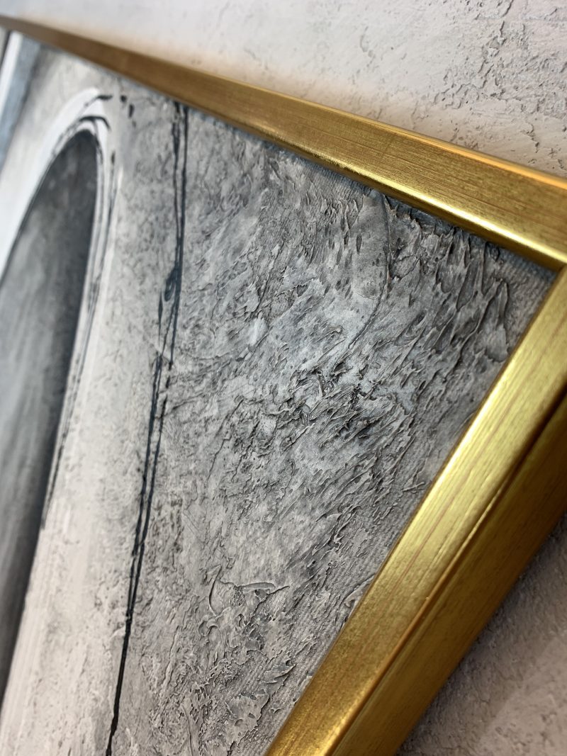 Kolorystyka obrazu: szary, złoty, brudny róż /mahoń + złota rama