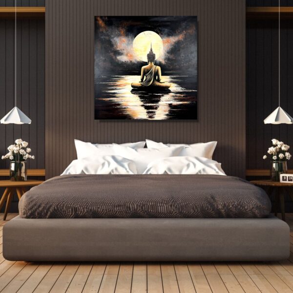 Obraz budda ręcznie malowany „Budda o zachodzie” 2346A w eleganckiej minimalistycznej formie i dużym formacie 100x100cm. Obrazy na płótnie to doskonały pomysł na prezent na urodziny, imieniny czy ślub. Malujemy także obrazy na zamówienie, robimy wizualizacje, pomagamy w doborze ram do obrazów – masz problem, napisz.
