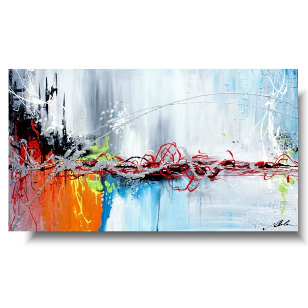 Obraz do biura abstrakcja „Kolory dzieciństwa” obrazy nowoczesne na płótnie 1042A w dużym formacie, pełen pozytywnej energii w żywej kolorystyce. Obraz nowoczesny jest niekonwencjonalny pod względem formalnym jak i warsztatowym. Do namalowania tego obrazu użyto całej palety barw, co daje efekt nowoczesnego designu. Obraz może ożywić modne jednobarwne wnętrze – salon, biuro, korytarz. W tej chwili są modne wnętrza monochromatyczne, minimalistyczne w których obraz to jedyne źródło koloru. Na specjalne życzenie Klientów wykonujemy także obrazy na zamówienie. Zapraszamy do bezpłatnej konsultacji mailowej sklep@dobrasztuka.pl Bardzo chętnie pomożemy w doborze odpowiedniego obrazu do wnętrza.