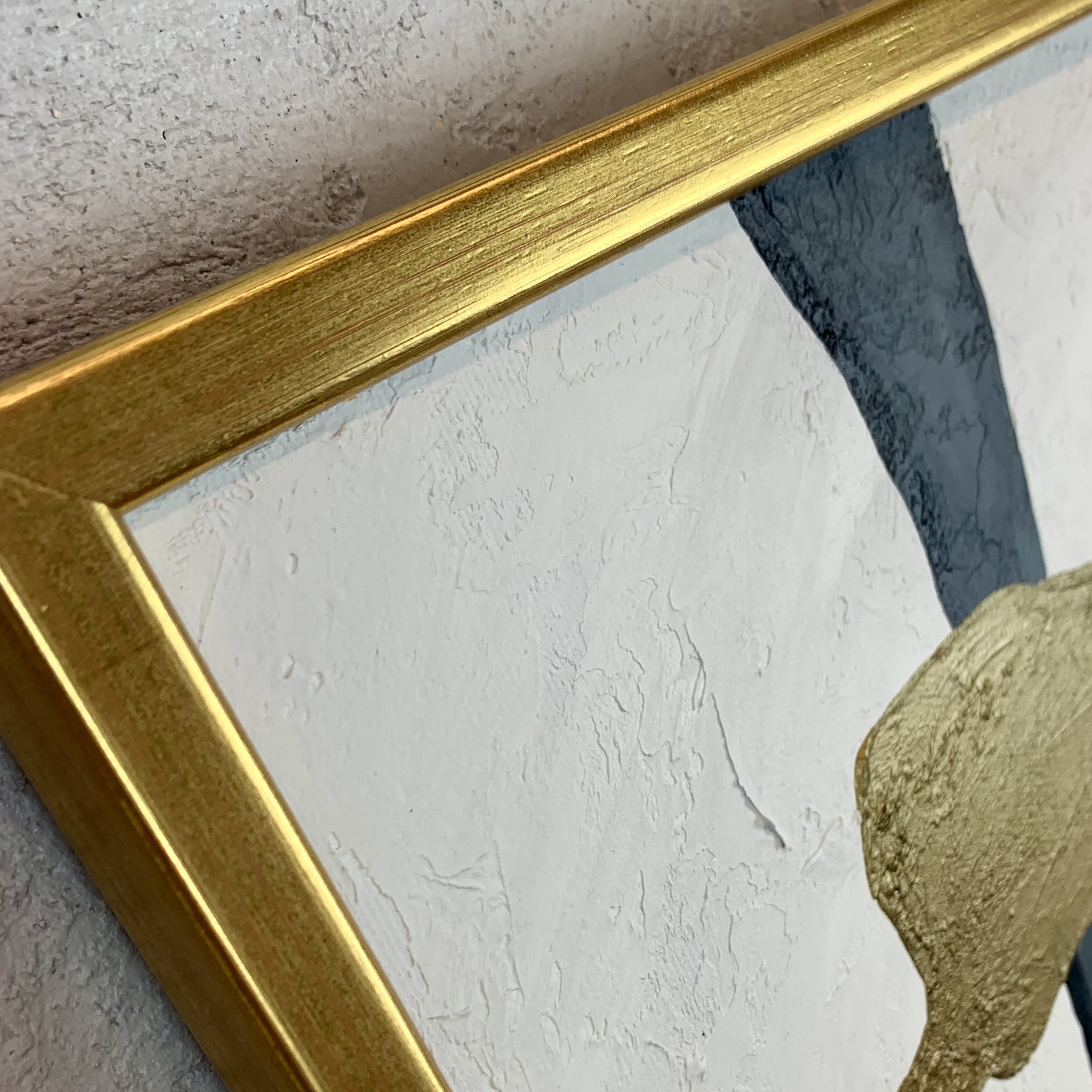 Obraz abstrakcja szaro złota „Żyła złota”  składa się z 1 części + rama w komplecie