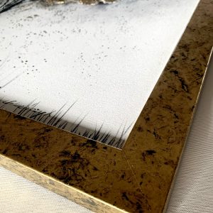 Kolorystyka obrazu: złoty, szary, biały, czarny + złota przecierana rama (listwa szerokości 4cm) .