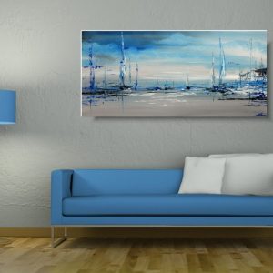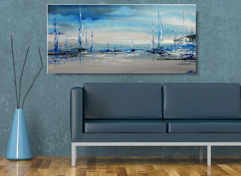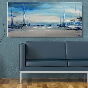 Obraz na płótnie “Błękitny port” naszego autorstwa żaglówki na spokojnym morzu. Kolory użytej farby akrylowej dodają tajemniczości. Idealnie ozdobi nowoczesny salon czy modne biuro. Wykonujemy obrazy marynistyczne, obrazy kwiaty, obrazy aniołów, obrazy dzielone – dyptyk, tryptyk, fortyk, obrazy jednoczęściowe w dużym formacie. Możemy namalować każdy obraz z naszej oferty w zmienionych wymiarach lub kolorystyce, możemy namalować obraz dzielony na jednej części lub obraz jednoczęściowy podzielić na kolka części.