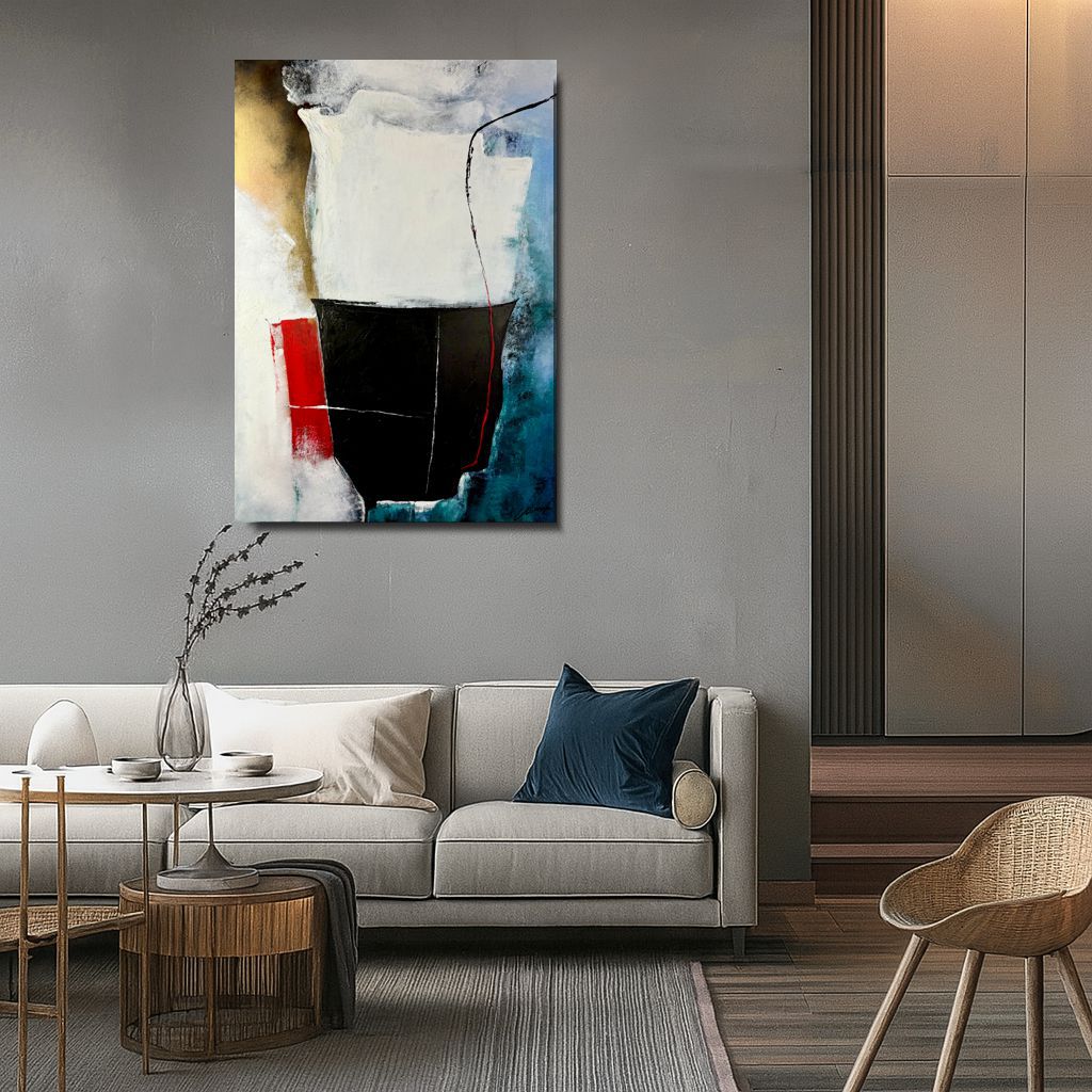 Obraz nowoczesna abstrakcja „Równowaga ciszy” 2360A – ten nowoczesny obraz abstrakcyjny przyciąga uwagę silnym kontrastem form i barw. Głęboka czerń zestawiona z bielą, akcentami czerwieni, złota i chłodnego błękitu tworzy kompozycję pełną napięcia, ale jednocześnie harmonii. Wyraźna struktura farby i dynamiczne linie nadają dziełu głębię oraz emocjonalny charakter. Obraz doskonale sprawdzi się we wnętrzach nowoczesnych, loftowych i minimalistycznych – zarówno w salonie, gabinecie, jak i przestrzeni biurowej czy hotelowej. To propozycja dla osób ceniących sztukę współczesną, która nie narzuca jednoznacznej interpretacji, lecz pobudza wyobraźnię.