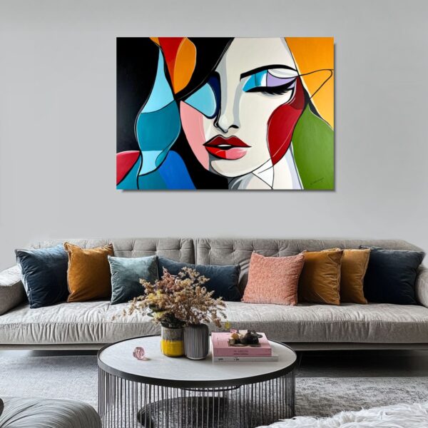 Obraz portret na płótnie „Kobieta niezależna” 2332A to obraz w prostej komiksowej formie i pozytywnej kolorystyce. Doskonały nowoczesny obraz ręcznie malowany na płótnie do biura lub gabinetu. Szukasz innego wymiaru – malujemy na zamówienie, zapraszamy!
