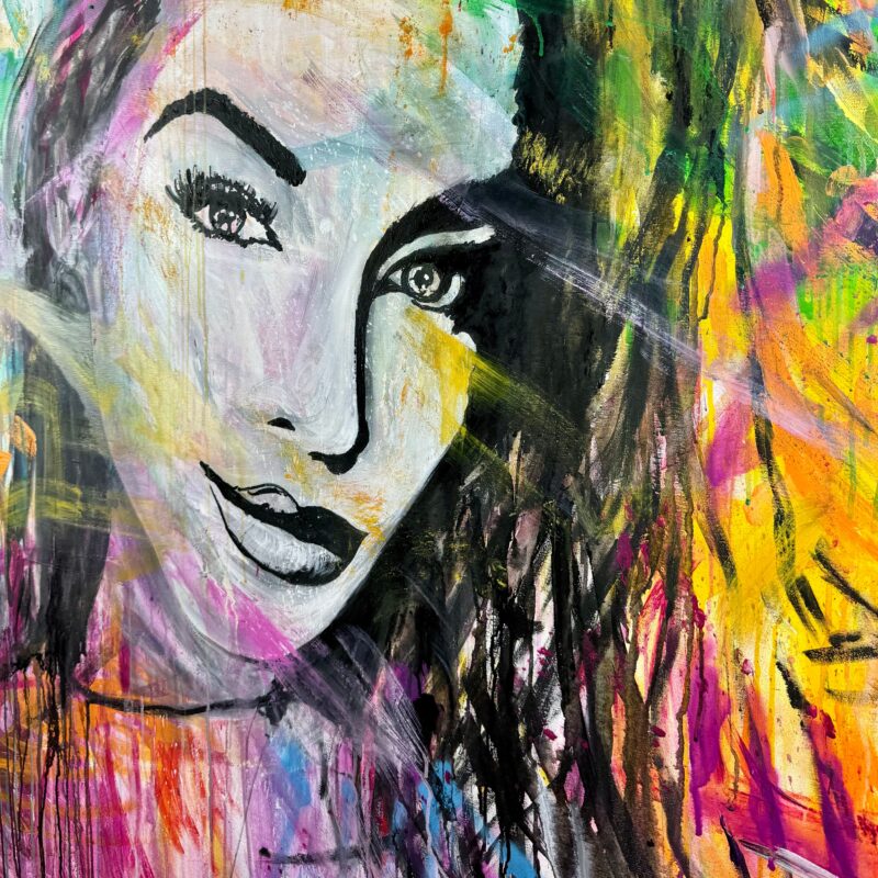 Obraz portret na płótnie “Kolorowa kobieta” 2327A wielokolorowy portret w dużym formacie to doskonała dekoracja wnętrza. Nowoczesny obraz ręcznie malowany wyróżni Twoje wnętrz.