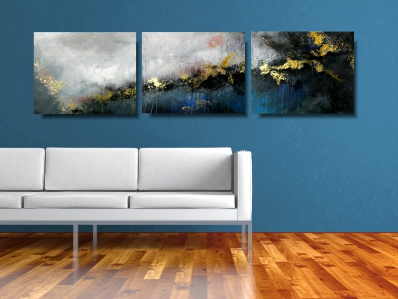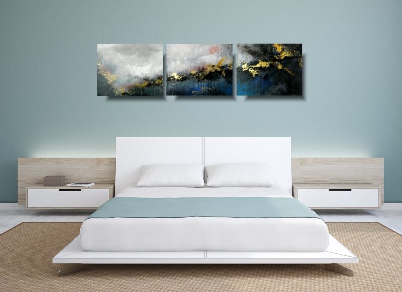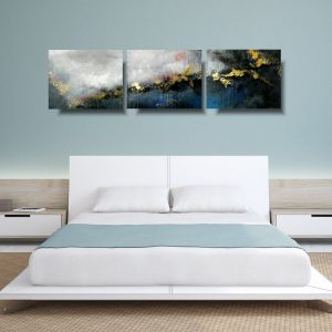 Obraz pozioma abstrakcja tryptyk “We śnie” składa się z 3 części stanowiących komplet.