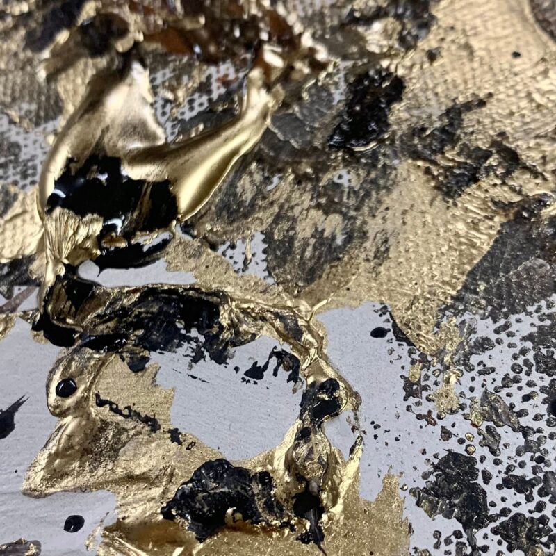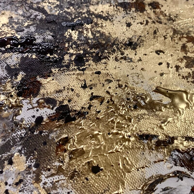 Obraz ręcznie malowany na płótnie “Złote drzewko” 2322A to elegancki obraz w delikatnej pudełkowej ramie. Obraz malowany farbami akrylowymi ze złotymi akcentami i grubą fakturą farby widoczną na zbliżeniu.