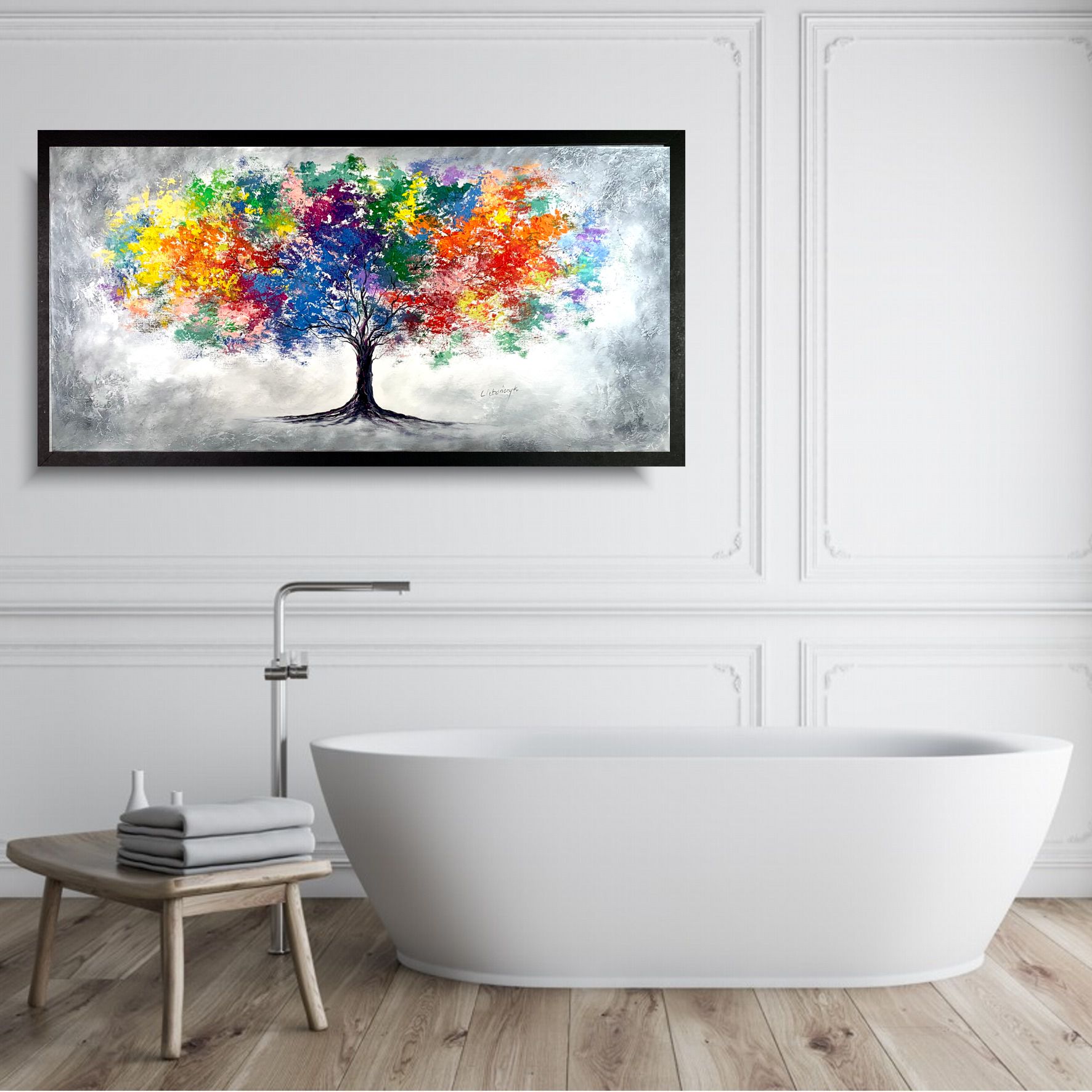 Obraz kolorowe drzewo składa się z 1 części + rama w komplecie