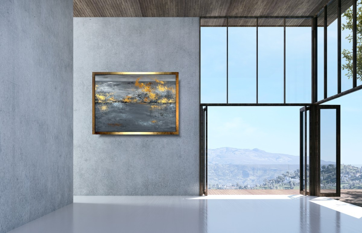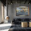 Obraz ręcznie malowany na płótnie „Marzenie” naszego autorstwa w spokojnej, stonowanej kolorystyce i złotej przecieranej ramie. Kolory użytej farby akrylowej dodają tajemniczości. Idealnie ozdobi nowoczesny salon czy modne biuro. Duży obraz do loftowego wnętrza a także wykonujemy obrazy marynistyczne, obrazy kwiaty, obrazy aniołów, obrazy dzielone – dyptyk, tryptyk, fortyk, obrazy jednoczęściowe w dużym formacie. Możemy namalować każdy obraz z naszej oferty w zmienionych wymiarach lub kolorystyce, możemy namalować obraz dzielony na jednej części lub obraz jednoczęściowy podzielić na kolka części.