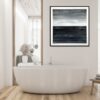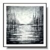 Obraz abstrakcja czarno biała „Na horyzoncie” składa się z 1 części + rama w komplecie