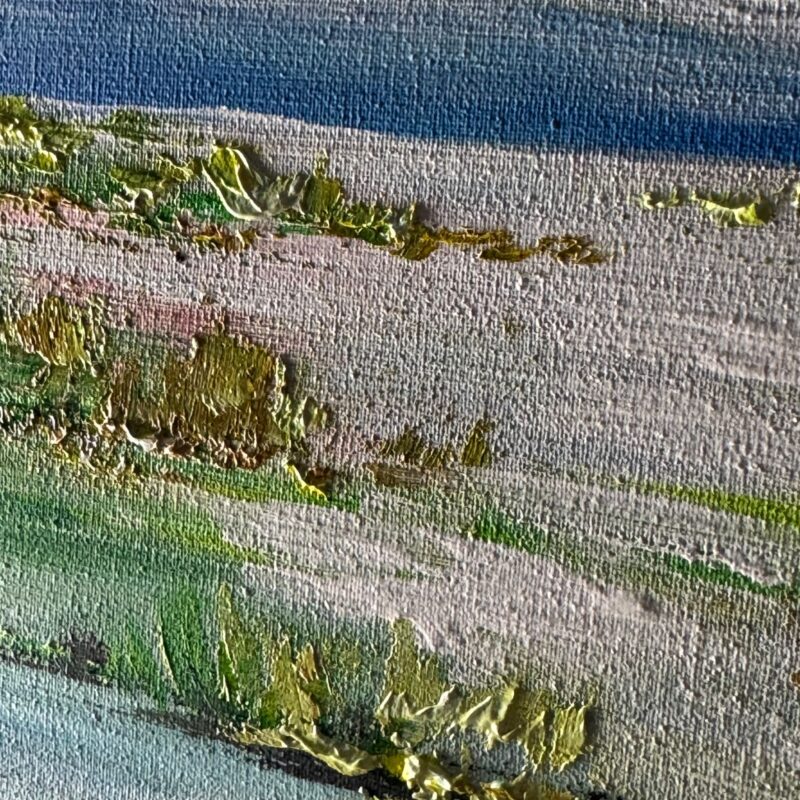 Obraz ręcznie malowany na płótnie “Beztroski dzień nad jeziorem” 2150A to obraz przenoszący nas w sielankowy krajobraz polskiej wsi. Mokre pola symbolizują tutaj nadchodzącą wiosnę. Odrodzenie się przyrody.