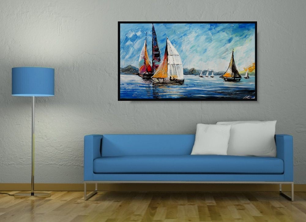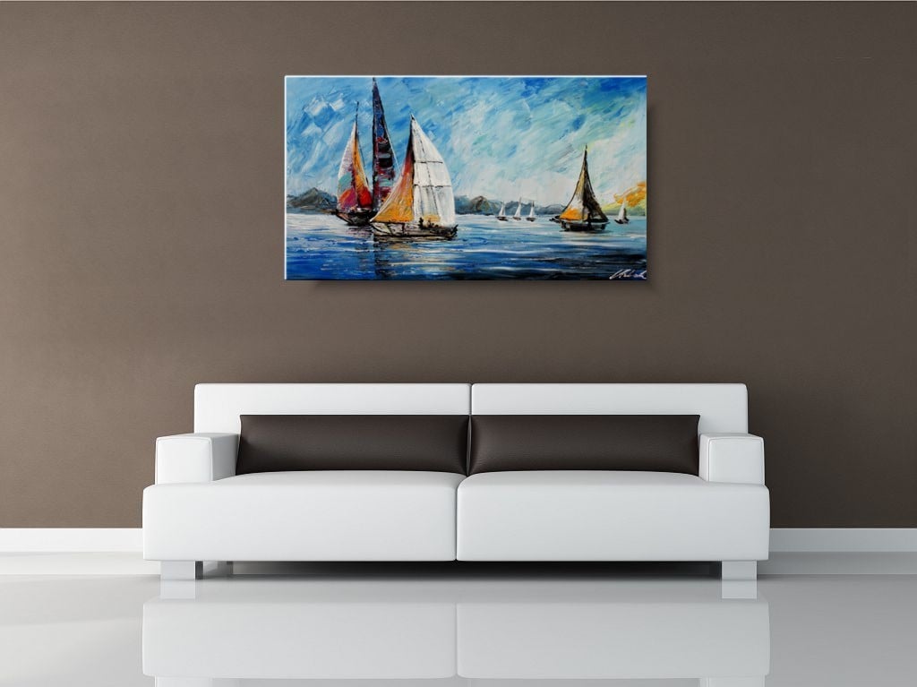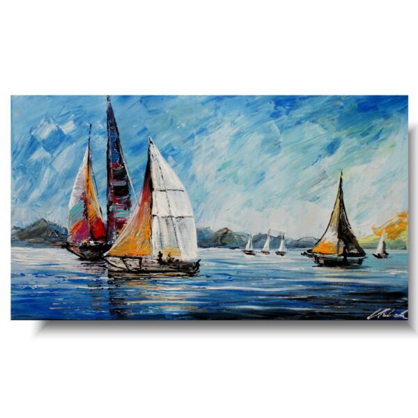 Obraz ręcznie malowany "Żaglówki na wietrze" obrazy marynistyczne na płótnie 1218A