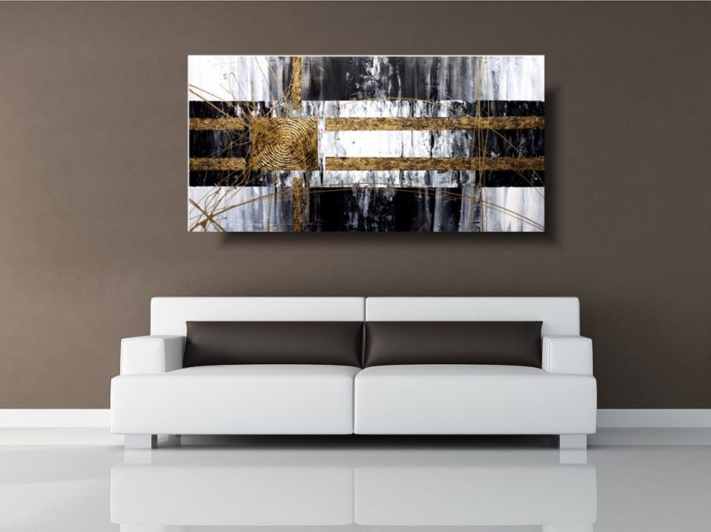 Obraz szara abstrakcja “Złoty akcent” w dużym formacie i modnej kolorystyce. Obrazy nowoczesne naszego autorstwa są wykonane z dbałością o każdy artystyczny detal. Oprócz standardowych farb akrylowych używamy często zaskakujące techniki oraz tworzywa malarskie. Wzory obrazów wyróżniają się oryginalnością i można nimi udekorować salon, sypialnię, kuchnię, łazienkę czy biuro. Malujemy – barwne nowoczesne abstrakcje, kolorowe obrazy ze zwierzętami, modne obrazy postacie, piękne obrazy kwiaty.
