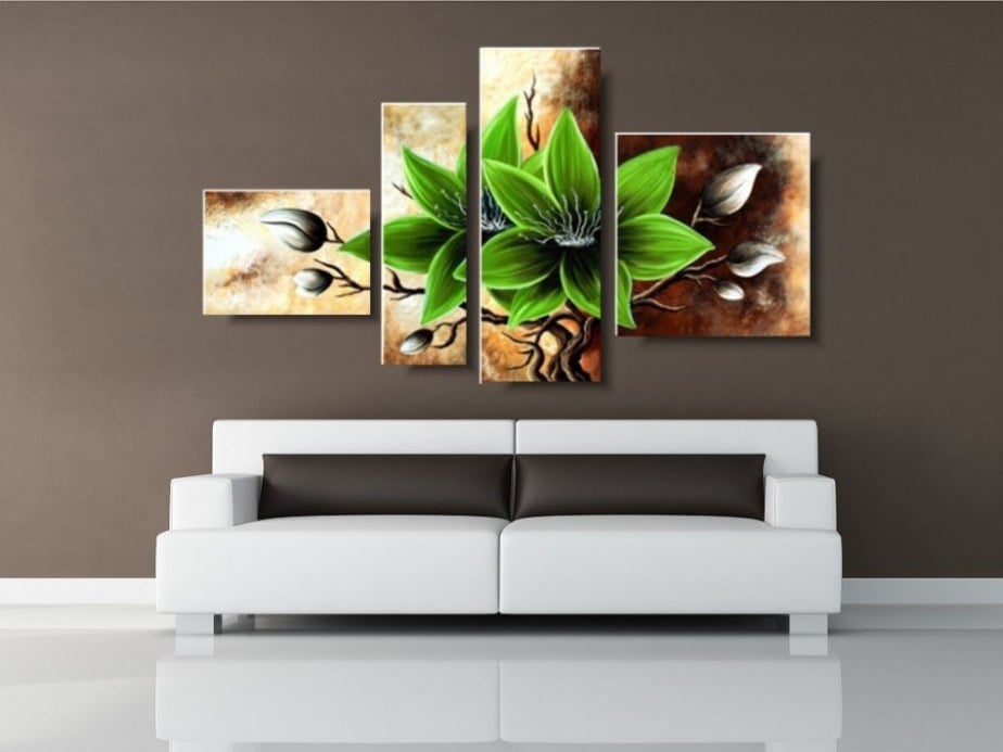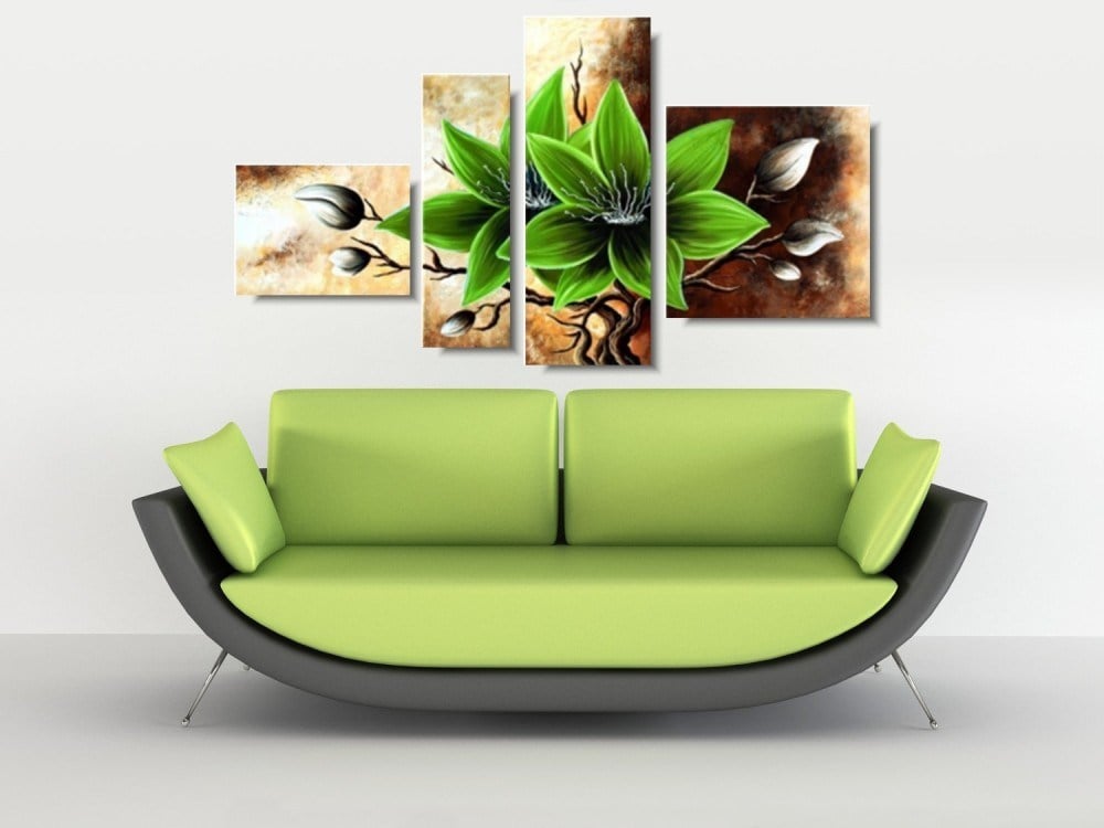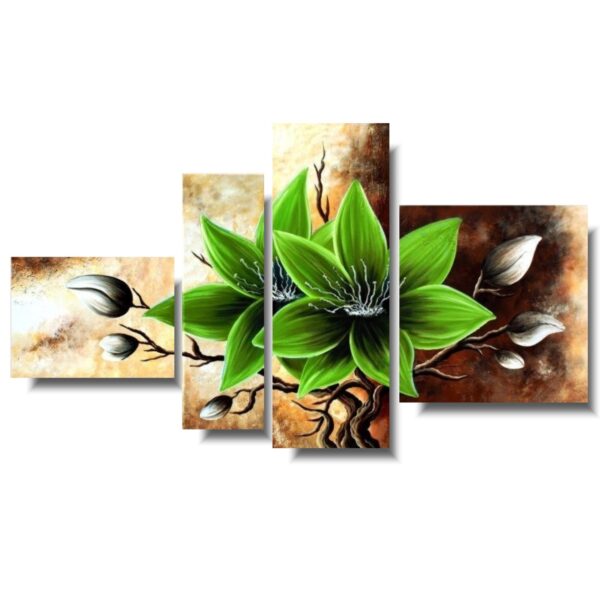Zielony amarylis zielone kwiaty obraz z kwiatami „Zielony amarylis” ręcznie malowany 1092B składają się z 4 części stanowiących komplet.