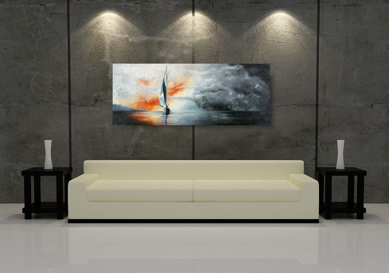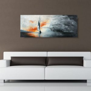 Piękny obraz “Burza na morzu”, obraz żaglówka na morzu w spokojnej, stonowanej kolorystyce. Kolory użytej farby akrylowej dodają tajemniczości. Idealnie ozdobi nowoczesny salon czy modne biuro. Wykonujemy obrazy marynistyczne, obrazy kwiaty, obrazy aniołów, obrazy dzielone – dyptyk, tryptyk, fortyk, obrazy jednoczęściowe w dużym formacie. Możemy namalować każdy obraz z naszej oferty w zmienionych wymiarach lub kolorystyce, możemy namalować obraz dzielony na jednej części lub obraz jednoczęściowy podzielić na kolka części.