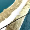 Kolorystyka przewodnia obrazu: szmaragdowy (zielony), tło jest białe + płatki złota