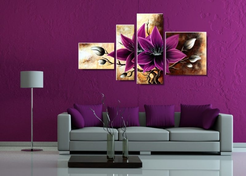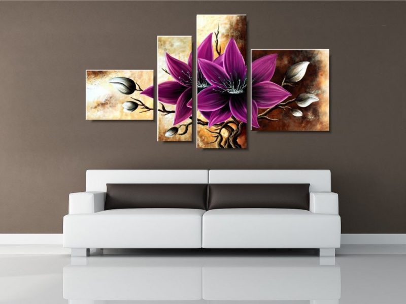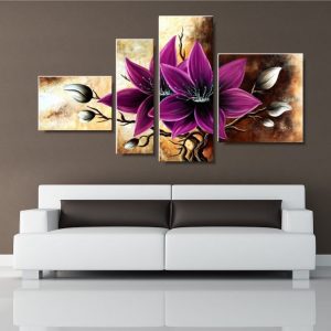Obraz zjawiskowy amarantowy amarylis składa się z 4 części stanowiących komplet.