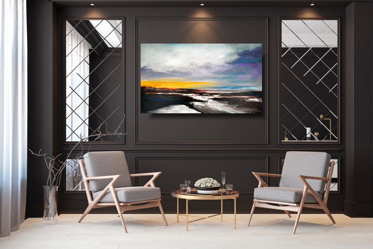 Obrazy do salonu pejzaż marynistyczny „Nadzieja” 1825A naszego autorstwa w spokojnej, stonowanej kolorystyce. Kolory użytej farby akrylowej dodają tajemniczości.