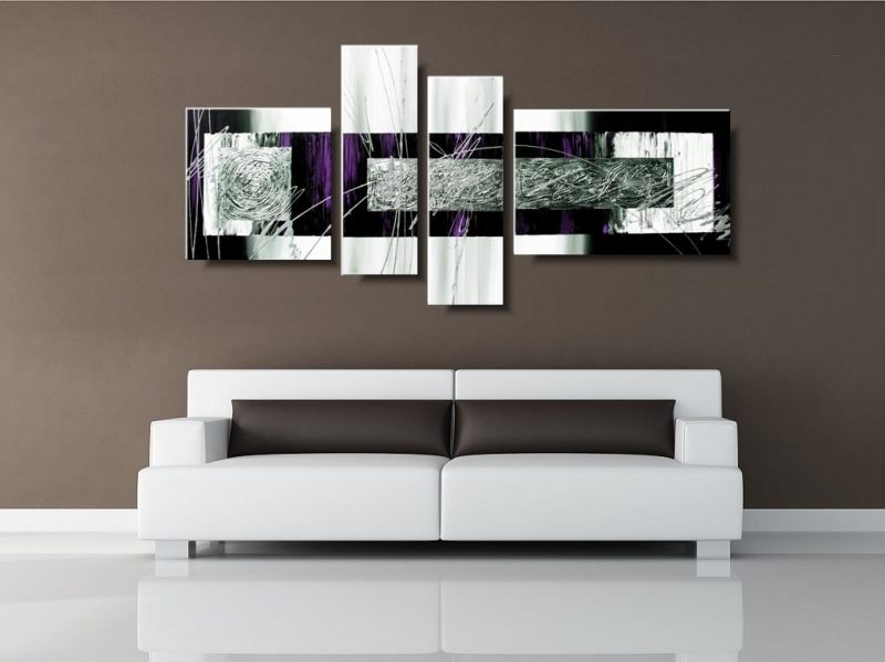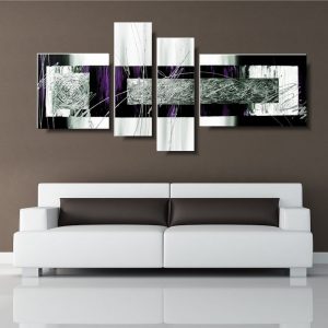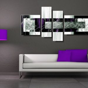Obrazy nowoczesne delikatna fioletowa abstrakcja wieloczęściowe w modnej kolorystyce – fiolet, srebro, czerń, biel. Obraz dla mamy jest niekonwencjonalny pod względem formalnym jaki i warsztatowym. Do namalowania tego modnego obrazu użyto ciekawej palety barw, co daje efekt nowoczesnego designu. Obraz abstrakcyjny to elegancka dekoracja wnętrza – salonu, biura, sypialni, sklepu. Gdyby jednak zamarzyło się Państwu coś zupełnie odmiennego – malujemy także obrazy na zamówienie, portret na zamówienie, duża kolorowa abstrakcja na zamówienie, modny elegancki akt na zamówienie.