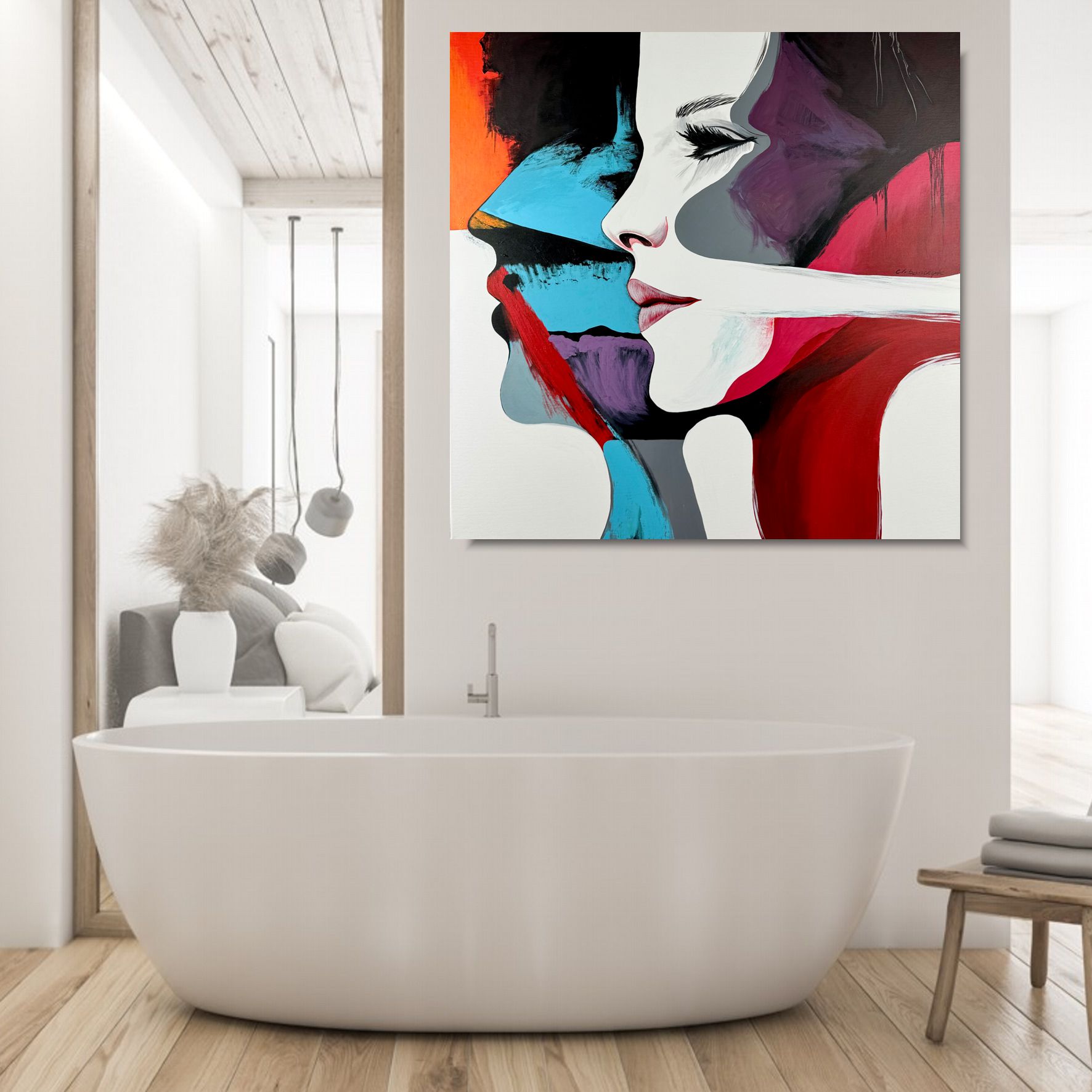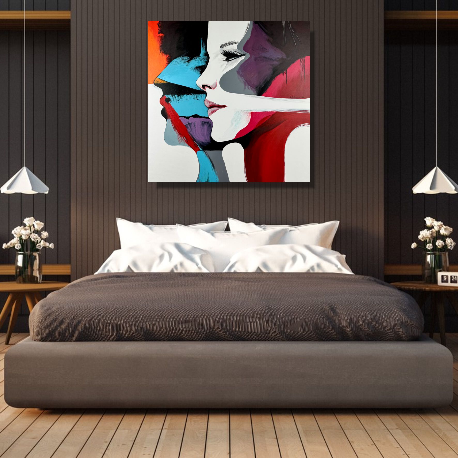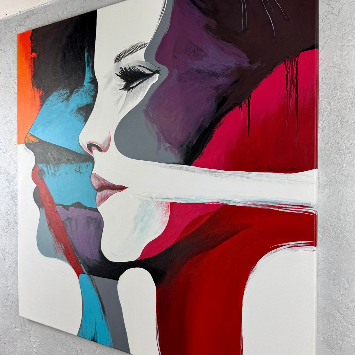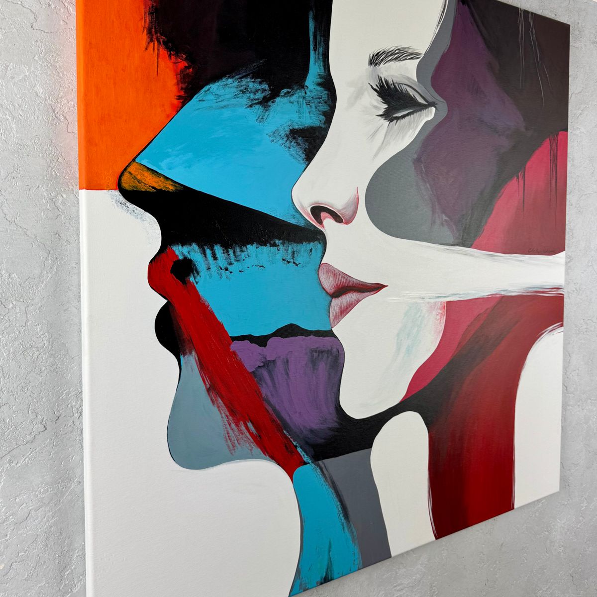 Portret obraz ręcznie malowany „Kobieta i ON” 2326A to nowoczesny, duży portret pary, w doskonale dobranej kolorystyce. Obraz może tworzyć idealny komplet z innym naszym obrazem “Kobieta pełna emocji”.