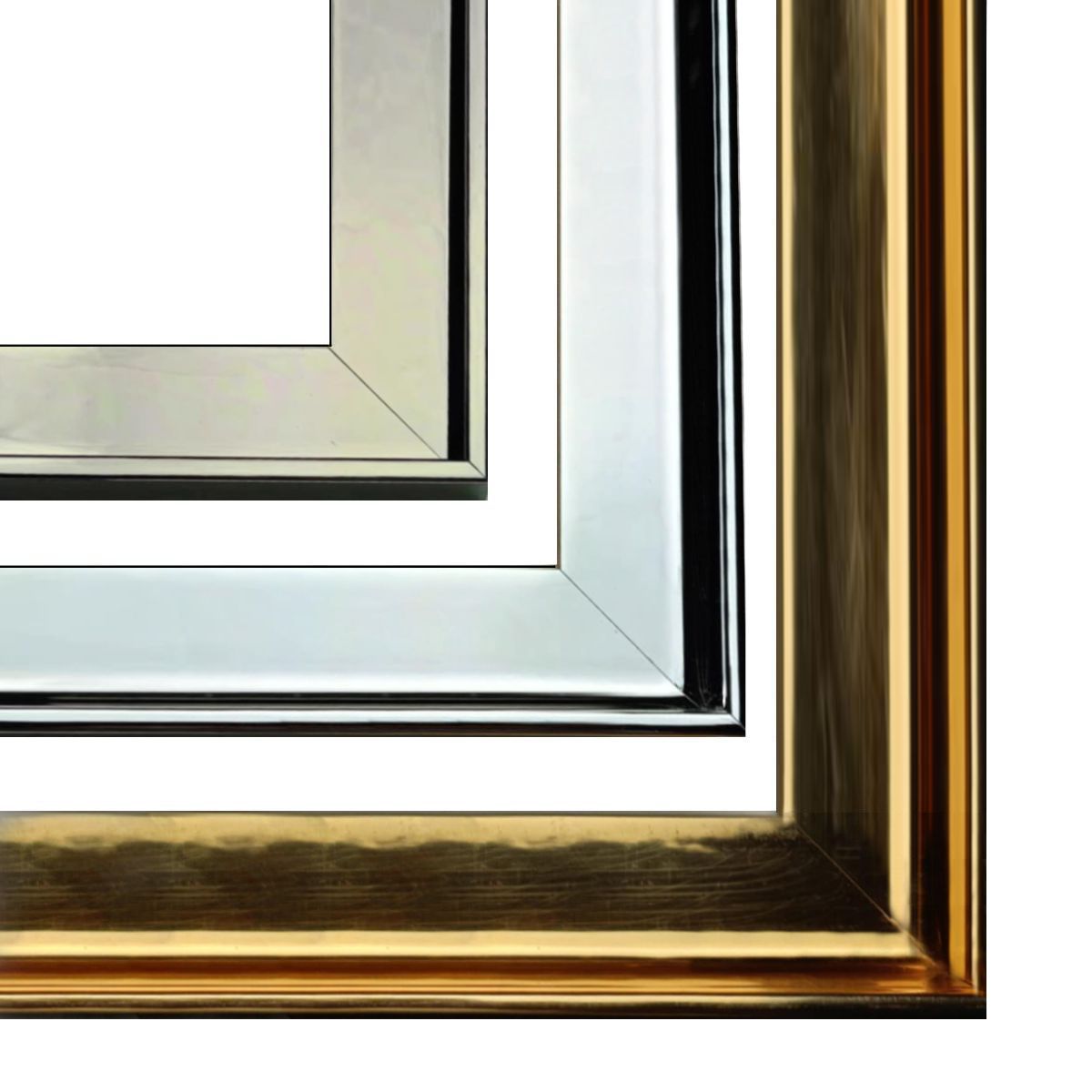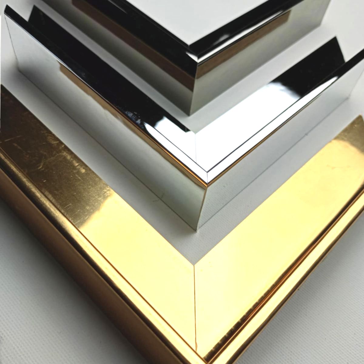 Rama american box do obrazu (AP3)–  Nowoczesna rama pudełkowa drewniana w kolorze chrom, srebrnym i złotym, lustrzana.