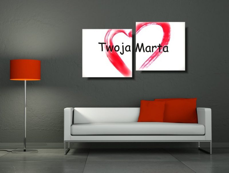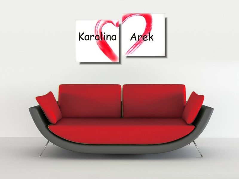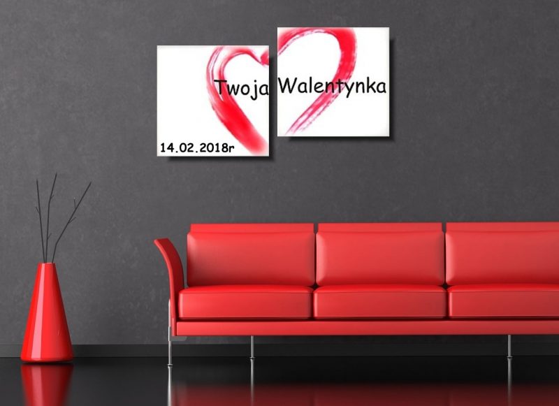 Walentynki obraz ręcznie malowany składa się z 2 części stanowiących komplet.