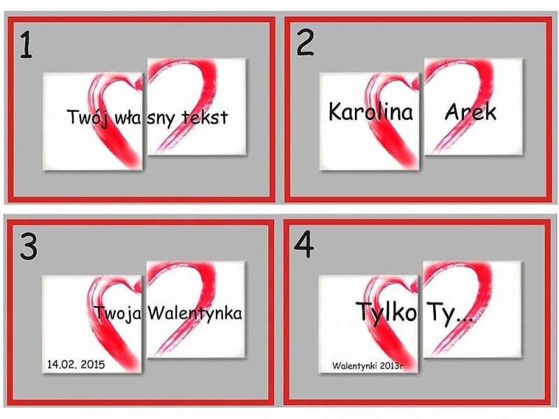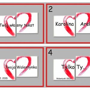 Walentynki obraz ręcznie malowany to bardzo oryginalny prezent na Święto Zakochanych. Wzory naszych walentynek wyróżniają się oryginalnością, są personalizowane (imiona lub własny tekst), wykonane ręcznie z niezwykła starannością. Doskonały prezent na: walentynki, urodziny, imieniny, rocznicę, wieczór panieński, dzień kobiet, dzień matki, dzień babci. Chcesz obraz z sercem, ale w innym kolorze, w innym wymiarze, a może masz jeszcze inny pomysł – napisz do nas, u nas nie ma rzeczy niemożliwych!