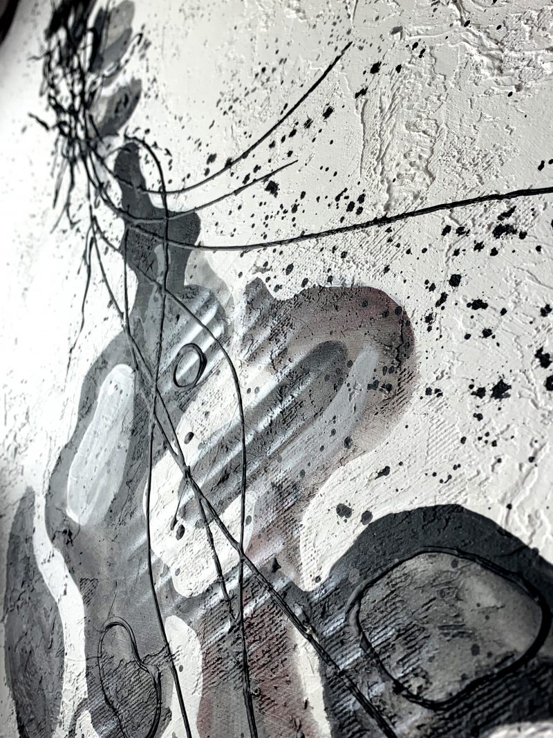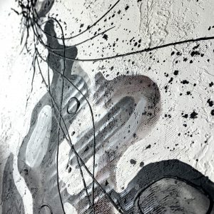 Pionowy wąski obraz abstrakcja “W sieci” 2175A to czarno biały obraz z motywem w delikatnych formach i cieniutkiej czarnej ramie. Abstrakcja to nasza specjalność.